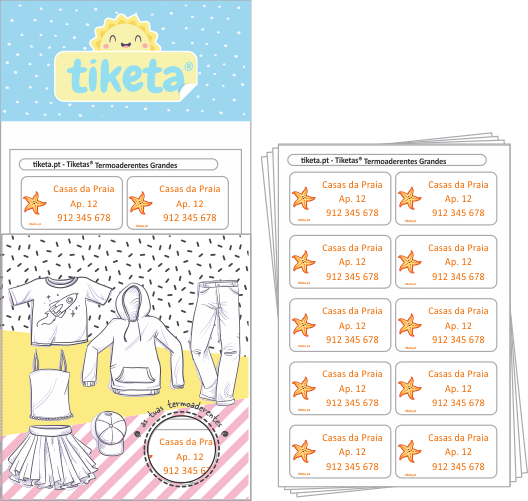 - Duradouras e resistentes. Especialmente criadas para suportar lavagens intensas(até 60º) e frequentes. Podem ir à máquina de secar. Depois de aplicadas estas etiquetas ficam como se um estampado se tratasse. Por essa razão são muito resistentes às lavagens.